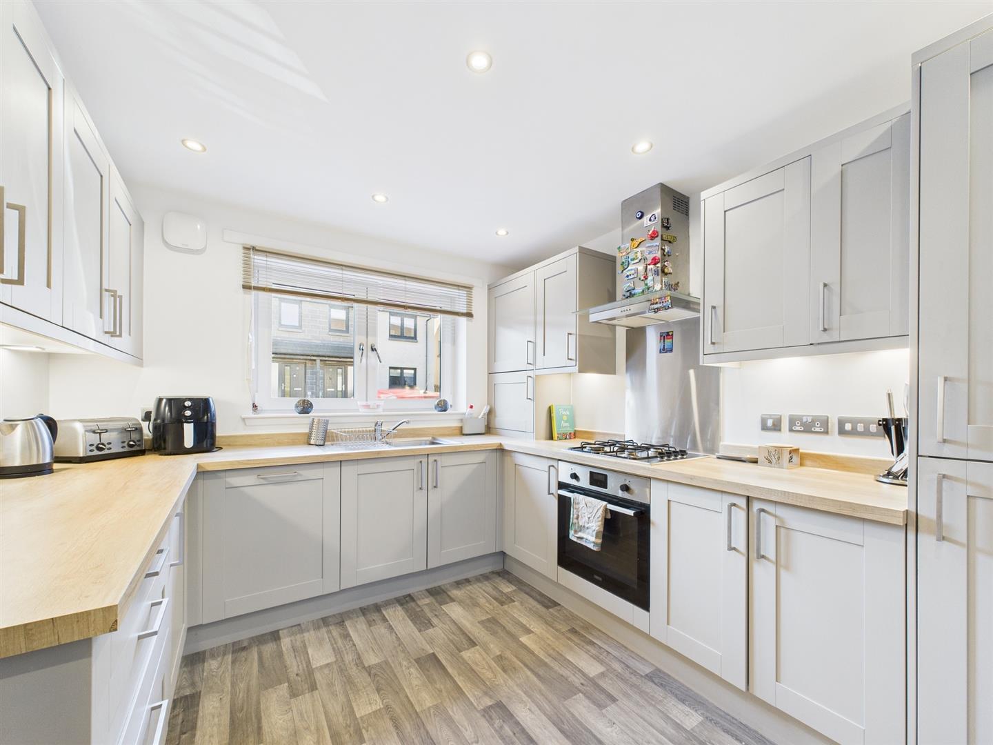 16 Sandilands Grove is an immaculate three-bedroom semi-detached home located in a popular modern development within the attractive village of Abernethy. Offering bright, contemporary interiors and a family-friendly layout, this stylish property is ideal for first-time buyers, couples, or young families seeking move-in-ready accommodation.The ground floor comprises a welcoming hallway, spacious lounge with neutral décor, and French doors opening to the rear garden, creating a seamless indoor-outdoor flow. The modern kitchen is fitted with sleek units, wood-effect worktops, and integrated appliances, complemented by excellent storage and workspace. A convenient WC completes the lower level. Upstairs, there are three well-proportioned bedrooms, including a generous principal bedroom with fitted wardrobes and a stylish en-suite shower room. The family bathroom is equally modern, featuring quality tiling and a shower-over-bath setup. Externally, the fully enclosed rear garden offers a safe and private space for children or pets, with a lawn and patio for outdoor dining. To the front, there is a double driveway providing excellent off-street parking. The home also benefits from gas central heating, triple glazing, and high energy efficiency. This is a superb opportunity to acquire a beautifully presented modern home in a peaceful yet well-connected village location.