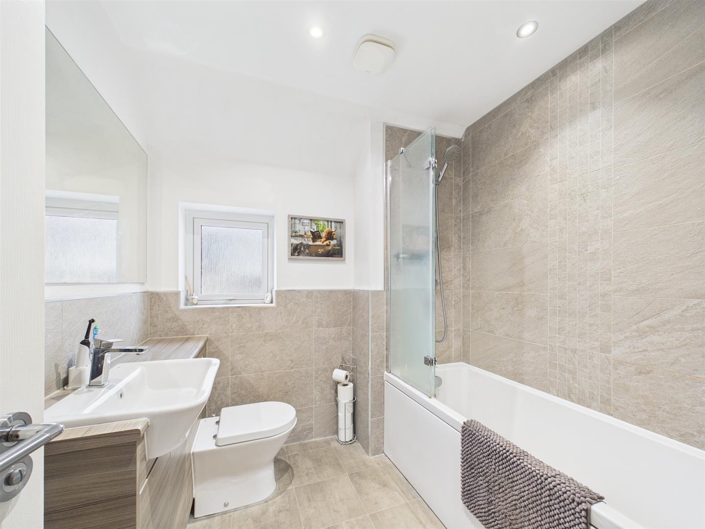- Modern family bathroom with shower over bath