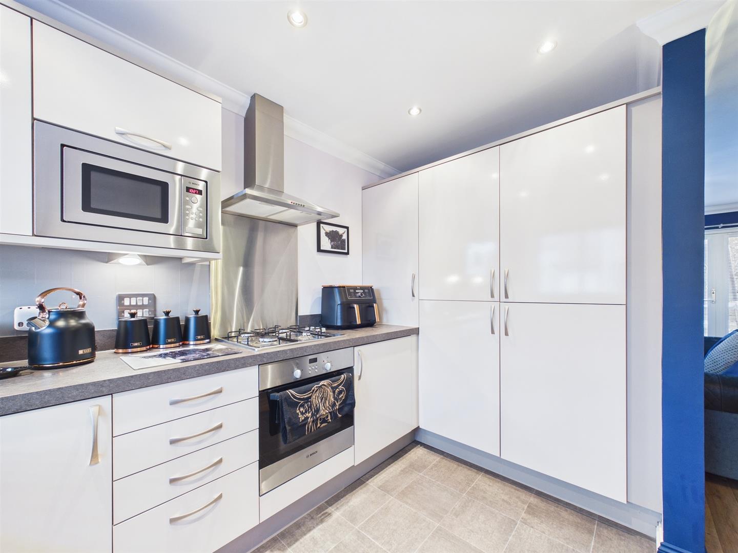 Located within a modern and popular residential development in Rattray, 16 School Field Road is a well-presented three-bedroom link detached family home offering generous living space and a private rear garden.The ground floor opens into a welcoming hallway with useful WC and internal access to the integral garage. The bright and spacious living room extends the full depth of the property, providing an excellent space for relaxing and entertaining, with French doors leading directly out to the rear garden. The modern kitchen is fitted with contemporary units, integrated appliances and ample worktop space, creating a practical and stylish hub for everyday family life. Upstairs, there are three well-proportioned bedrooms. The principal bedroom is particularly spacious, while the second double bedroom and a further single bedroom provide flexible accommodation for children, guests or home working. The family bathroom is finished with a modern suite and shower over the bath. Externally, the property enjoys a fully enclosed rear garden laid mainly to lawn, ideal for families and outdoor entertaining. To the front, there is a driveway providing off-street parking along with access to the integral garage. This attractive home will appeal to families, first-time buyers and those seeking a move-in ready property in a convenient and sought-after location close to local amenities and schooling.
