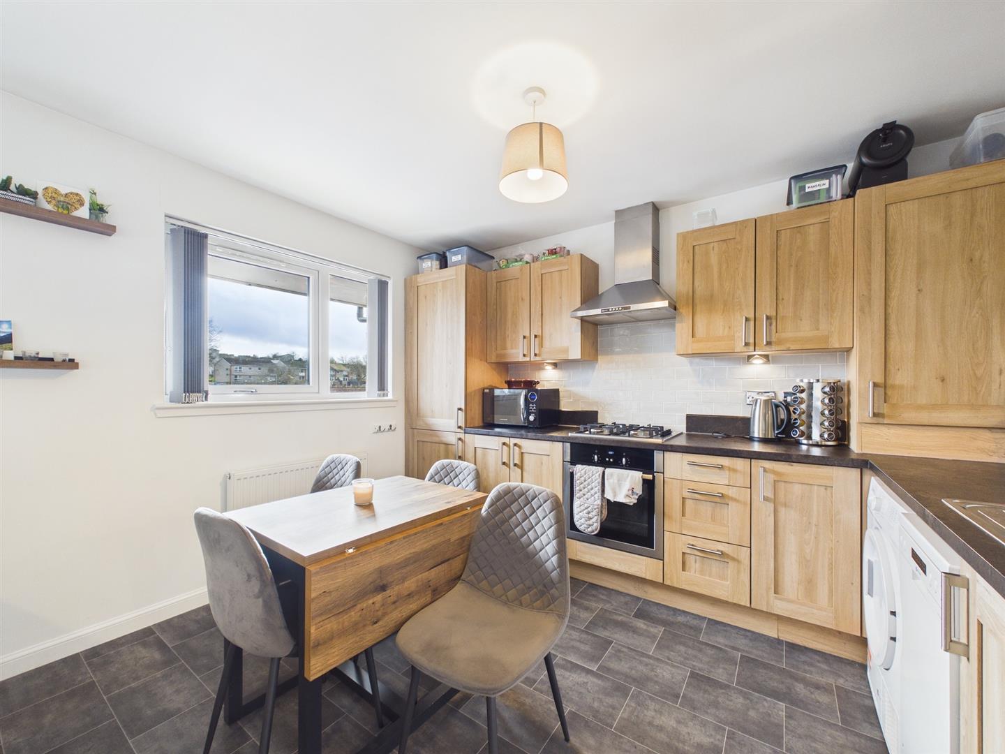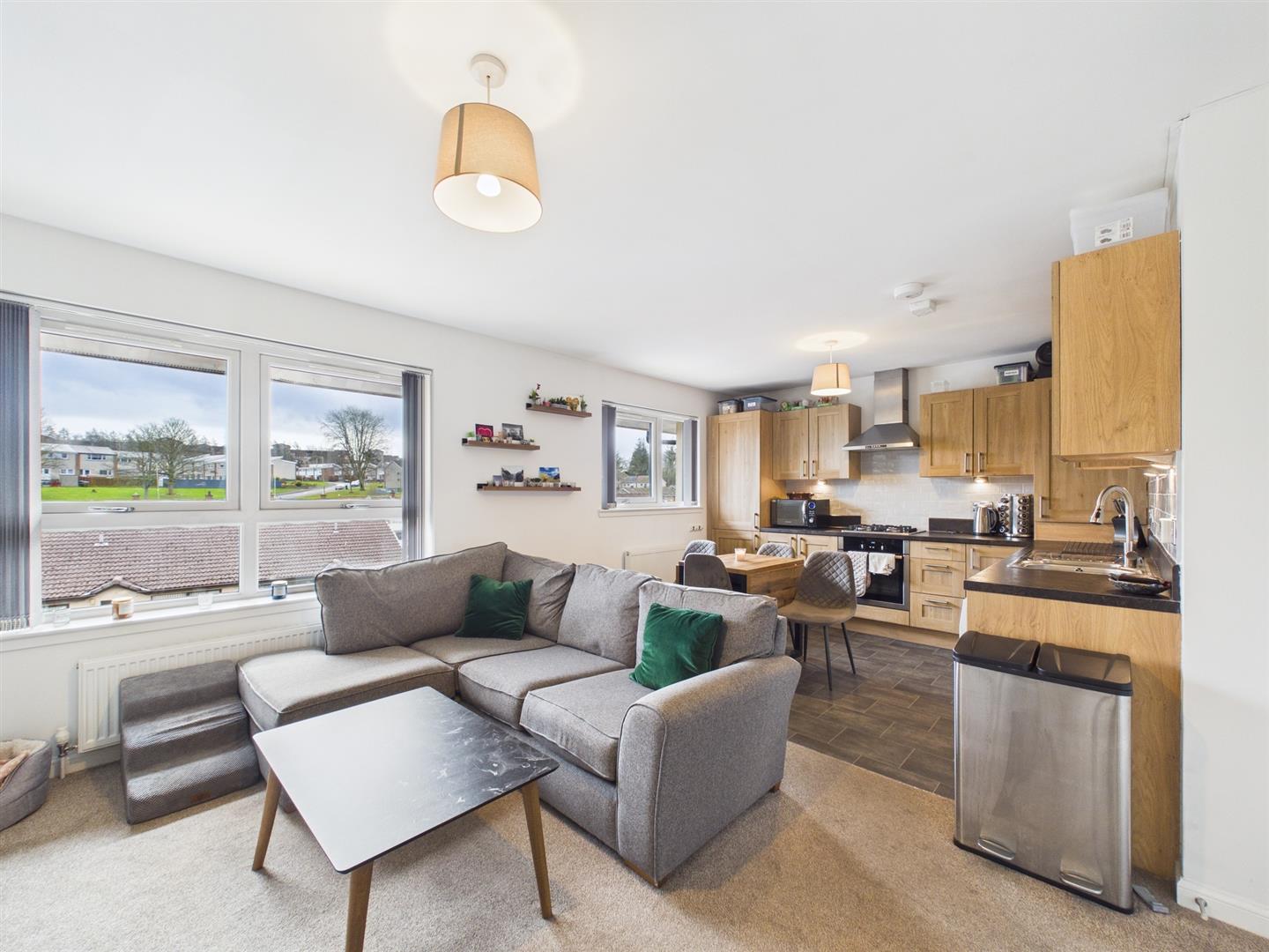 Located within a modern and well-maintained development in a popular area of Perth, this beautifully presented two-bedroom top floor apartment offers bright, spacious accommodation with private residents’ parking and secure entry access.The heart of the home is the impressive open-plan kitchen and living area, extending over 20 feet in length. This generous space comfortably accommodates both lounge and dining furniture, while large windows allow natural light to flood the room. The contemporary kitchen is fitted with stylish wood-effect units, integrated oven and gas hob, ample worktop space and room for appliances, making it ideal for everyday living and entertaining. There are two well-proportioned double bedrooms, both tastefully decorated and offering flexibility for guests, home working or additional storage. The modern bathroom is fitted with a white suite and shower over bath, complemented by attractive tiling and a window providing natural ventilation. Externally, the property benefits from communal grounds and allocated residents’ parking to the front. The secure entry system ensures privacy and peace of mind. This attractive apartment will appeal to first-time buyers, professionals, downsizers or buy-to-let investors seeking a move-in ready home in a convenient and desirable location close to Perth city centre and excellent local amenities.