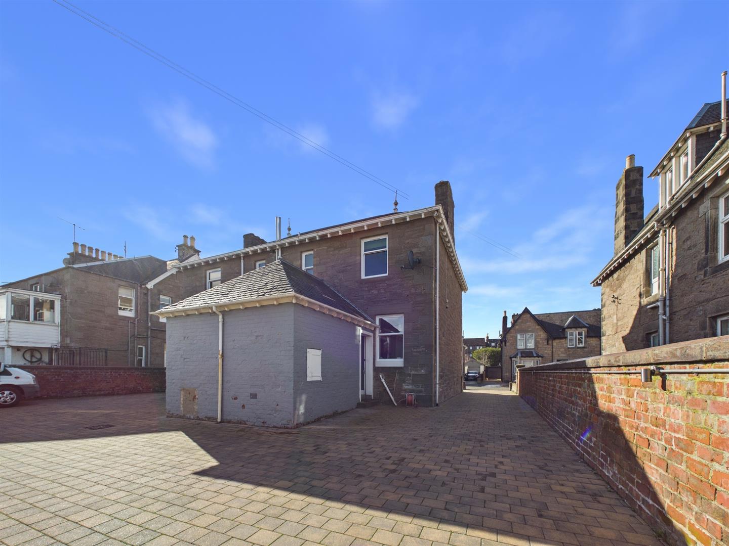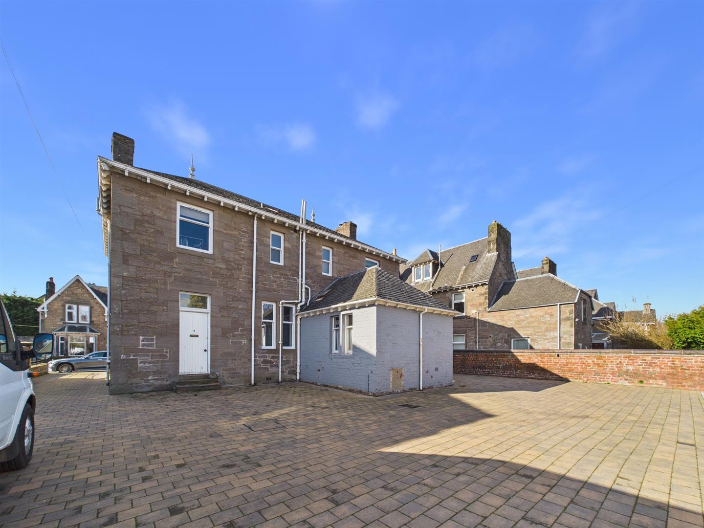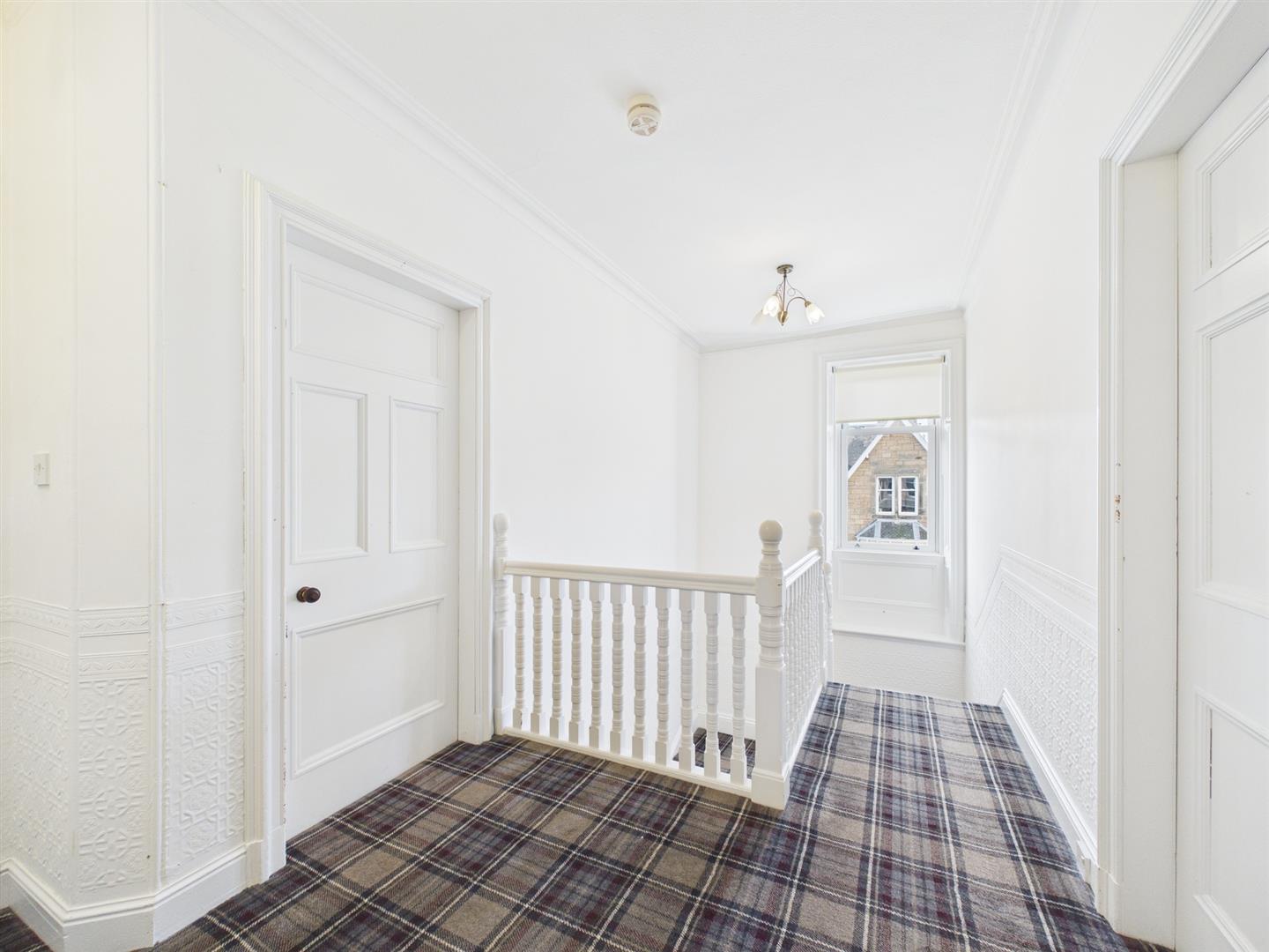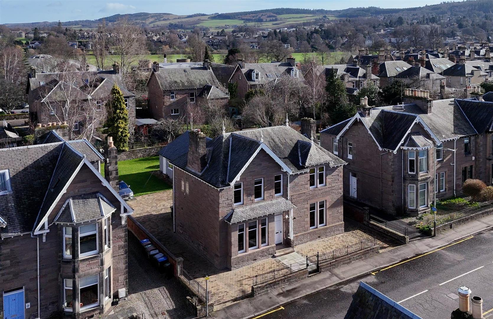 26 Balhousie Street is a most impressive and beautifully modernised period home, offering substantial and flexible accommodation arranged over two floors, complemented by private garden grounds and a detached double garage to the rear. This striking stone-built property successfully blends traditional architectural character with modern upgrades, creating a superb family home in a highly sought-after area of Perth.The ground floor provides a welcoming and versatile layout, featuring an elegant living room with classic proportions, ornate detailing and a focal fireplace. To the rear lies a stylish dining kitchen with integrated appliances, ideal for both family living and entertaining. A generous double bedroom is also located on the ground floor and benefits from its own contemporary en-suite shower room, making it ideal for guests, multigenerational living or single-level accommodation. A separate laundry room and additional storage further enhance the practicality of this level. Upstairs, the property offers four further well-proportioned bedrooms, all enjoying excellent natural light and flexibility of use. An eye-catching family bathroom serves the upper floor. Externally, the home enjoys enclosed garden grounds providing a pleasant outdoor space, while a detached double garage with remote controlled door offers secure parking or excellent storage. This is a rare opportunity to acquire a substantial and characterful home close to Perth city centre.