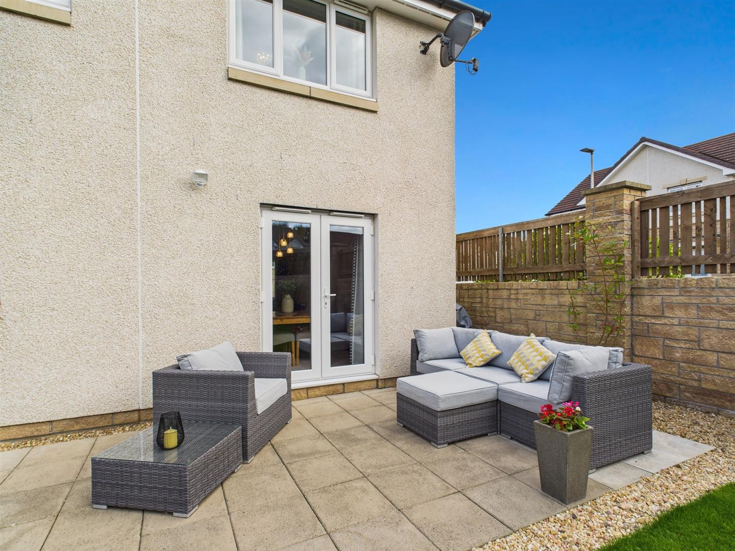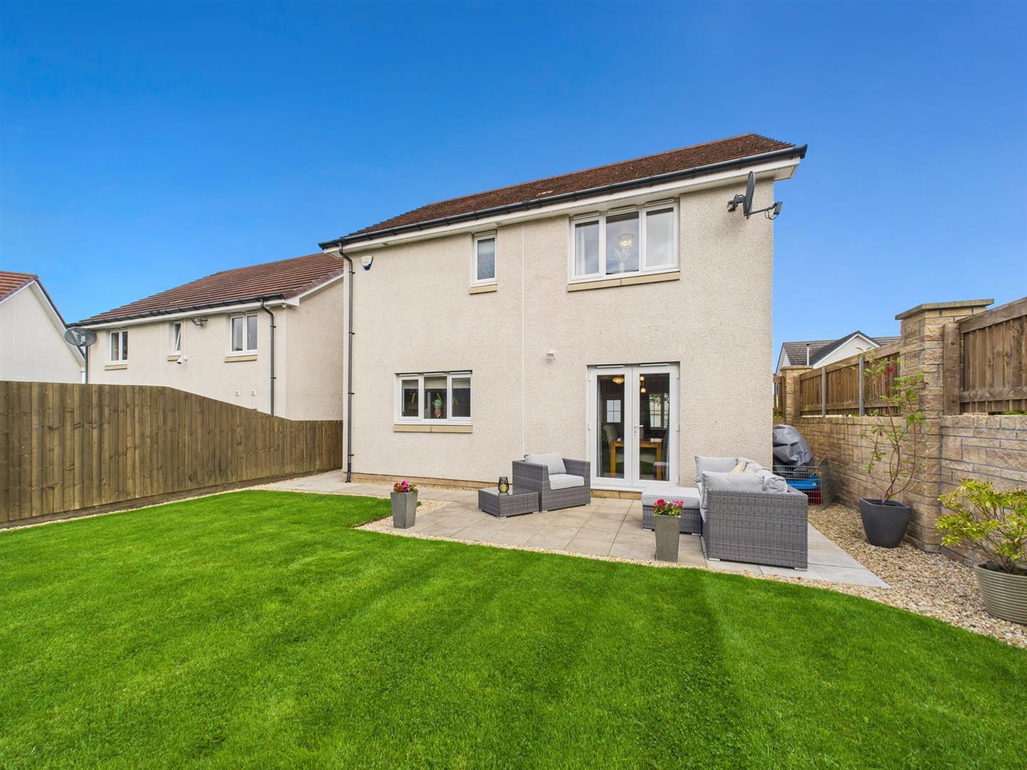22 Frances Gordon Road is a beautifully presented three-bedroom detached home, located on a generous corner plot within a sought-after modern development in Perth. Offering a practical and stylish layout, this property is ideal for families and couples alike, combining modern design with comfortable living.The ground floor opens with a welcoming hallway leading to a spacious lounge that flows naturally into the dining area. Patio doors provide direct access to the South-West facing rear garden, creating a bright and airy open-plan feel — perfect for entertaining or relaxing with family. The contemporary fitted kitchen features sleek cabinetry, integrated appliances, and ample storage. A useful WC and an integral garage add to the convenience of the home. Upstairs, the property offers three well-proportioned bedrooms, each complete with fitted wardrobes. The main bedroom benefits from an en-suite shower room, while the remaining two bedrooms provide excellent versatility, suitable for children, guests, or home working. A modern family bathroom completes the accommodation. Externally, the rear garden is neatly landscaped with a lawn and patio, offering the perfect setting for outdoor dining and play. To the front, a driveway accommodating two cars provides ample off-street parking, alongside the garage. Presented in true walk-in condition, this home blends modern comforts with a welcoming atmosphere, making it a fantastic choice for those seeking a stylish property in a prime Perth location.