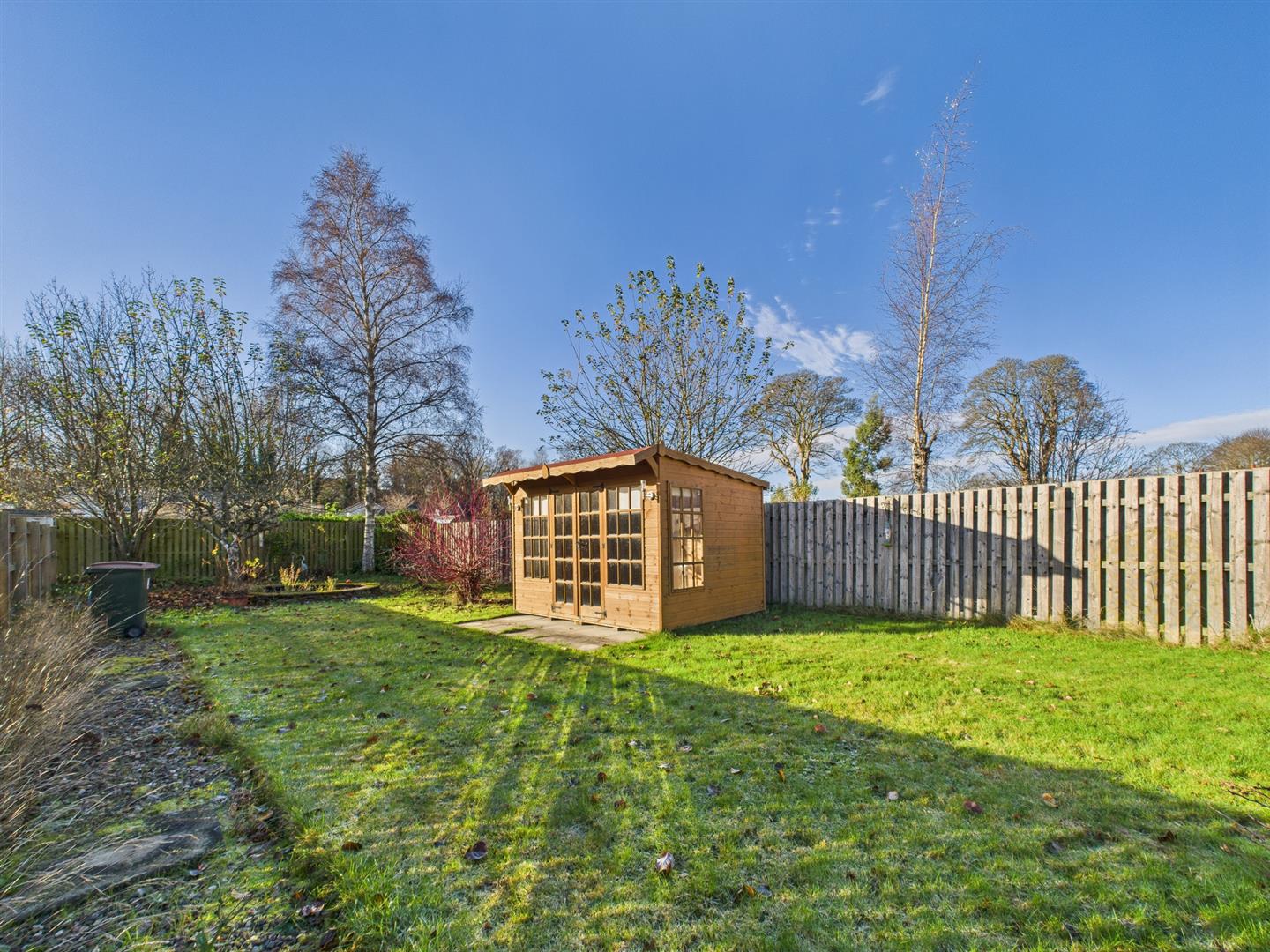 10 The Crescent is a spacious two-bedroom semi-detached bungalow located in a quiet residential street within the popular village of Luncarty. Beautifully positioned on a generous plot with a large rear garden, the property offers bright, well-proportioned rooms and excellent scope for further modernisation or extension (subject to permissions). The accommodation comprises a welcoming entrance porch leading into a central hallway. The spacious living room features a traditional fireplace and double doors into a bright sunroom overlooking the garden. A recently upgraded dining kitchen provides excellent storage, modern cabinetry and garden views. There are two generous double bedrooms, both with great storage, and shower room. Externally, the standout feature is the extensive rear garden – largely laid to lawn with mature planting, patio areas, timber summer house and excellent privacy. The front garden offers additional planting space, and on-street parking is available directly outside. With LPG gas central heating, double glazing and a layout suited to downsizers, couples or young families, this property offers a fantastic opportunity to secure a rarely available bungalow in a sought-after village just minutes from Perth.