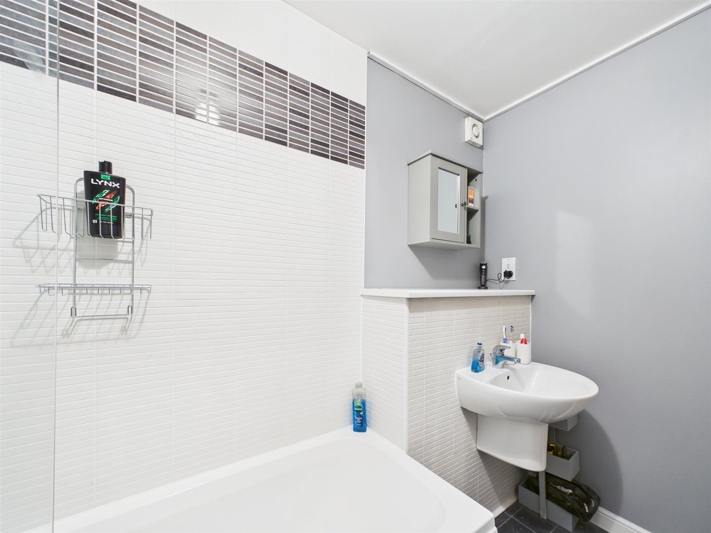 - Modern bathroom with shower over bath