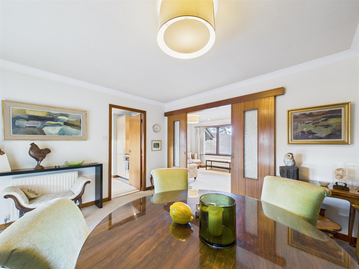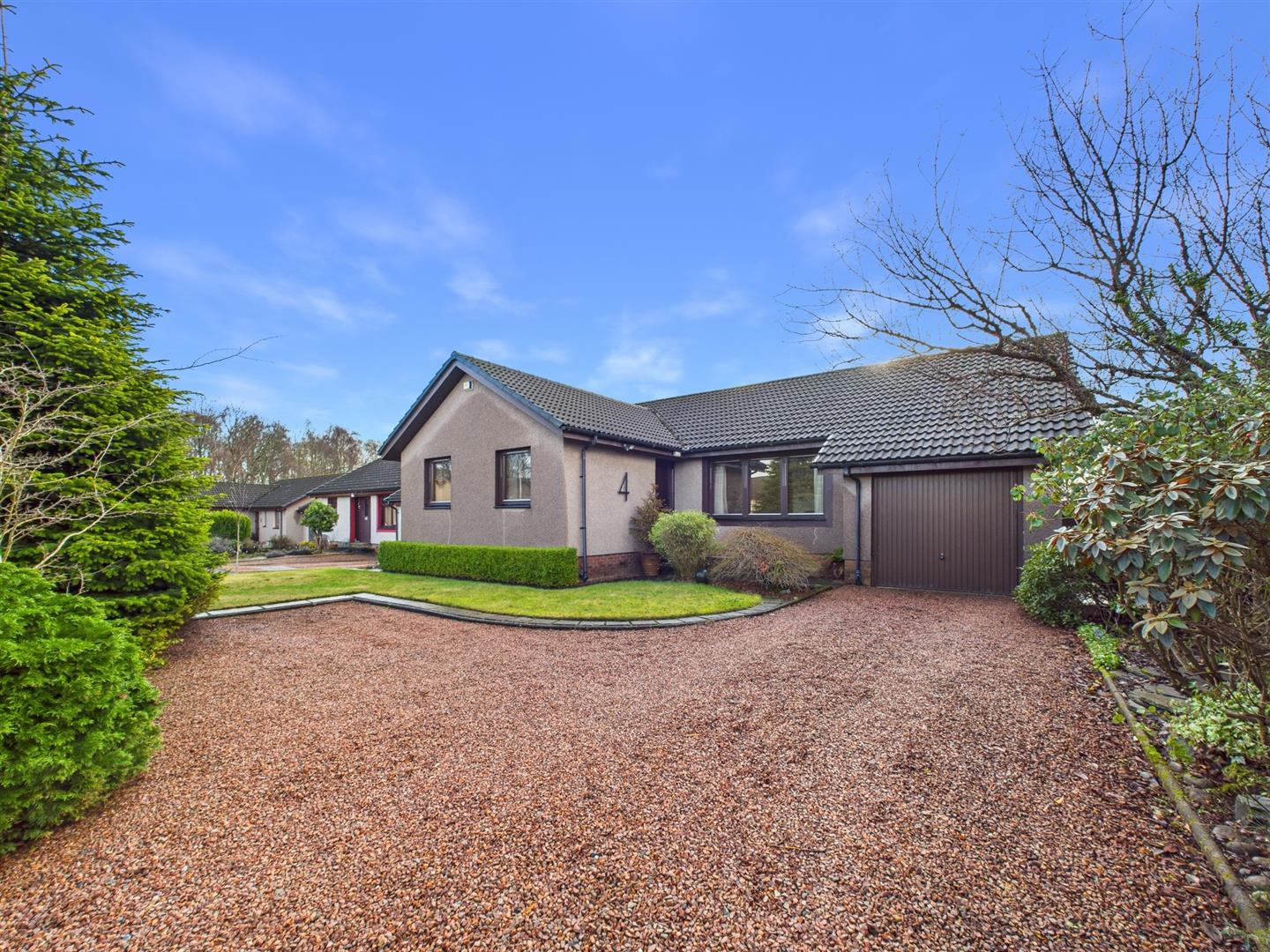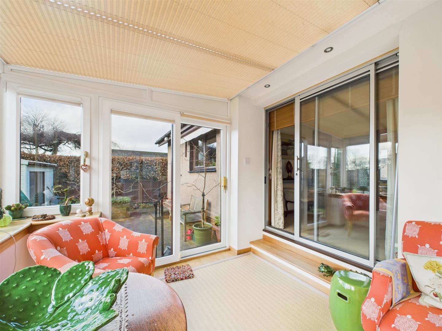 **Closing date set for Monday 16th February at 12.00** 4 Muir Bank is a well-presented and generously proportioned detached bungalow, set within a quiet and sought-after residential area of Scone. Offering generous accommodation all on one level, the property is ideal for a range of buyers including families, downsizers, or those seeking a comfortable long-term home on the level.The welcoming entrance vestibule leads into a central hallway which provides access to all principal rooms. The spacious living room enjoys excellent natural light and offers a comfortable setting for everyday living. Adjacent to this is a separate dining room, ideal for entertaining, with direct access through to a bright and inviting sunroom which overlooks the rear garden and provides a relaxing space to enjoy the outlook year-round. The kitchen is well proportioned and fitted with ample storage and worktop space, with a door leading to a useful utility room offering further storage and external access. There are two generous double bedrooms, both benefiting from built-in storage, along with a further room currently used as a home office which could also serve as a third bedroom if required. The accommodation is completed by a family bathroom and an additional WC. Externally, the property sits within well-maintained garden grounds, with a paved patio area to the rear providing an ideal spot for outdoor seating. A private driveway leads to a single garage, offering secure parking and additional storage. This attractive bungalow combines space, versatility, and a peaceful setting close to local amenities.