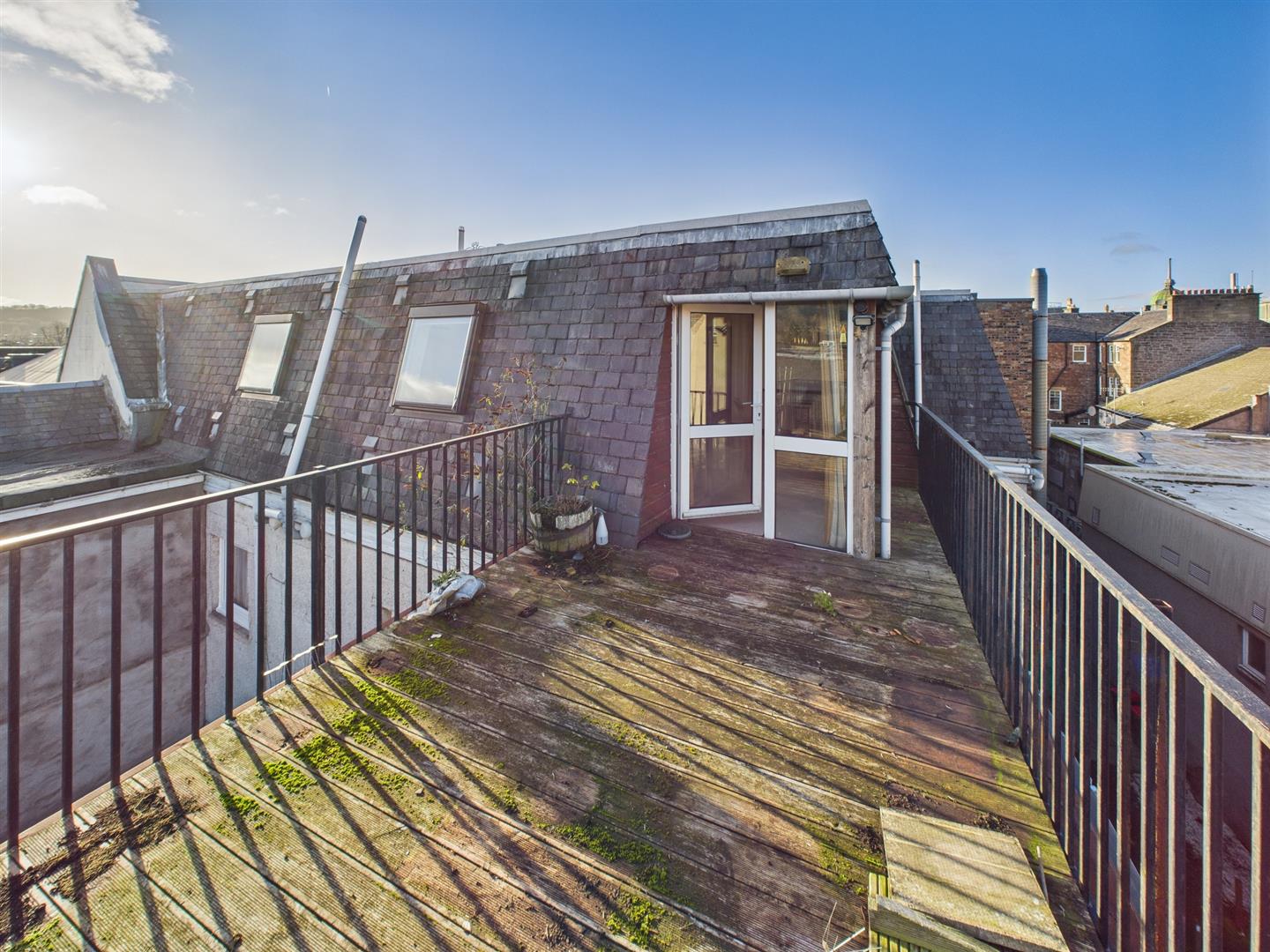 Flat 17 at Beaumont House offers a rare opportunity to secure a generously proportioned, top-floor apartment in one of Perth’s most central and characterful locations. Set within a handsome traditional building on St Johns Place, this spacious three-bedroom home combines impressive floor space with superb views across the city’s historic skyline. The bright open-plan living and dining area is flooded with natural light from dual-aspect windows and benefits from an elevated outlook toward Perth’s landmarks. A substantial dining kitchen provides excellent storage and workspace, with ample room for informal dining.All three bedrooms are well sized, two featuring built-in wardrobes, and the principal & second bedrooms share a jack and jill en-suite shower room. A separate family bathroom and a dedicated utility room add further convenience to the layout. Additional storage is plentiful throughout the home.Externally, the flat enjoys use of a balcony area overlooking the rooftops—ideal for enjoying sunsets or alfresco moments. With gas central heating, secure entry, and direct access onto the pedestrianised city centre, this property is perfect for buyers seeking generous accommodation, character, and exceptional convenience. It is equally suited to homeowners, investors, or those seeking an urban base in the heart of Perth.