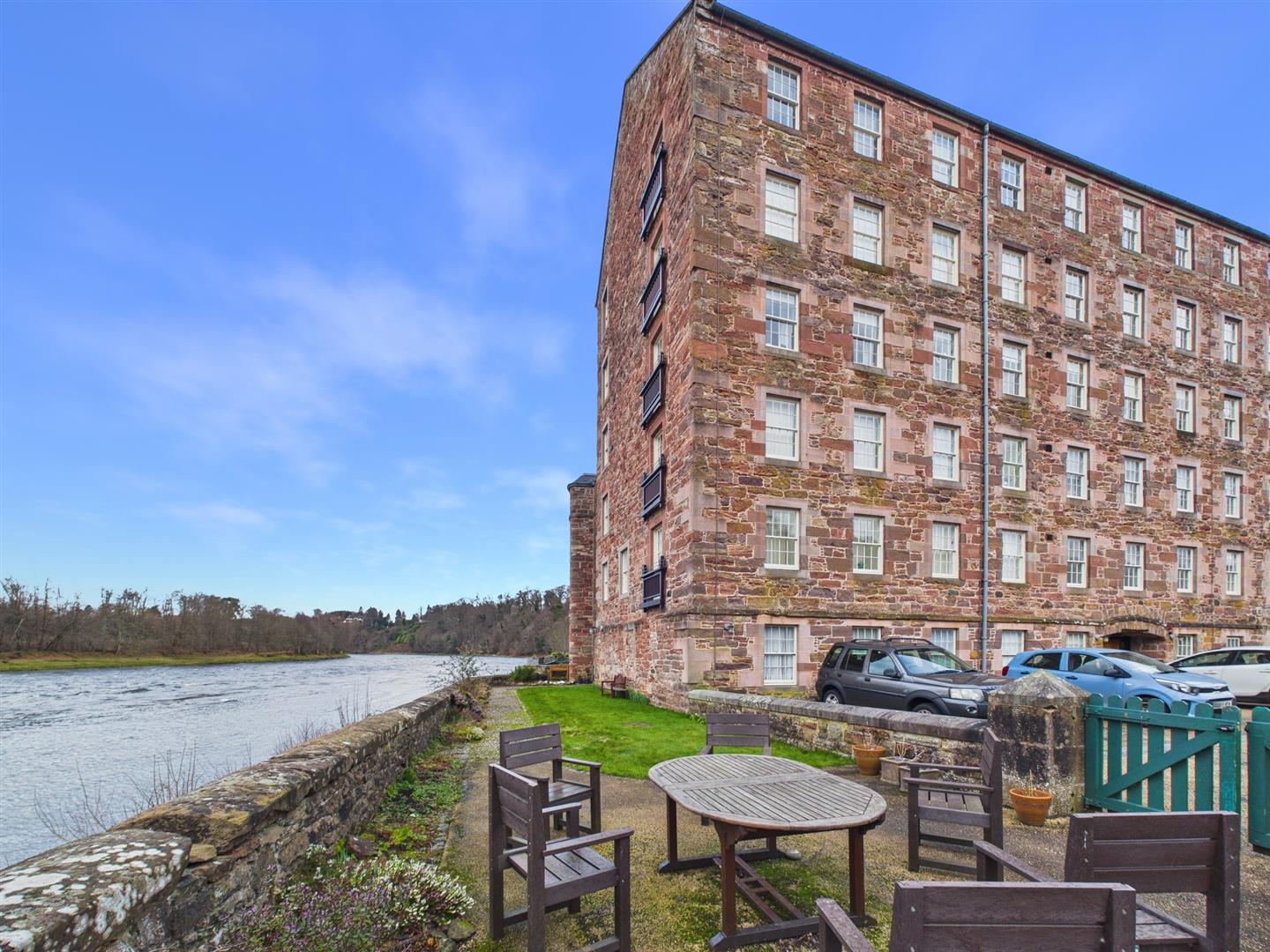 Forming part of the historic and highly regarded Stanley Mills development, this beautifully presented first-floor apartment offers stylish living within an iconic converted mill building set on the banks of the River Tay.The accommodation extends to approximately 518 sq ft and is thoughtfully laid out to maximise both space and natural light. A welcoming hallway provides access to all rooms. The impressive open-plan kitchen and living area is the heart of the home, featuring large sash-style windows which flood the space with light and frame attractive views of the surrounding historic buildings. The modern kitchen is fitted with contemporary units, generous worktop space which flows seamlessly into a comfortable lounge and dining area. The double bedroom is well proportioned and enjoys a peaceful outlook, while the bathroom is fitted with a white suite and shower over bath. A useful additional storage room (located on the ground floor) provides excellent extra space rarely found in apartments. The property benefits from electric heating, secure entry system and well-maintained communal areas. Externally, residents enjoy beautifully kept grounds, riverside walks and allocated parking within the development. This charming apartment will appeal to first-time buyers, downsizers, investors or those seeking a unique home within a tranquil yet highly accessible setting.