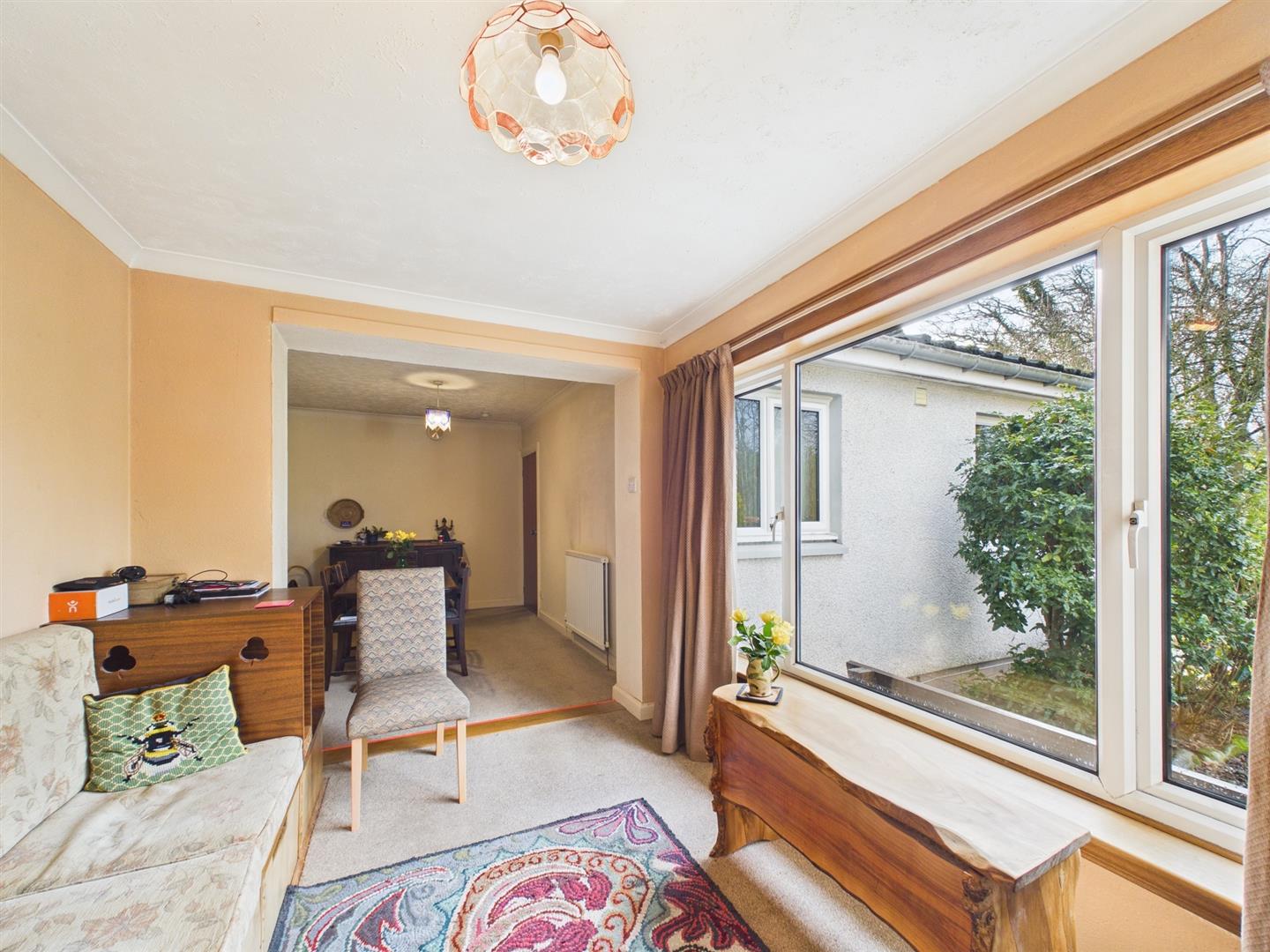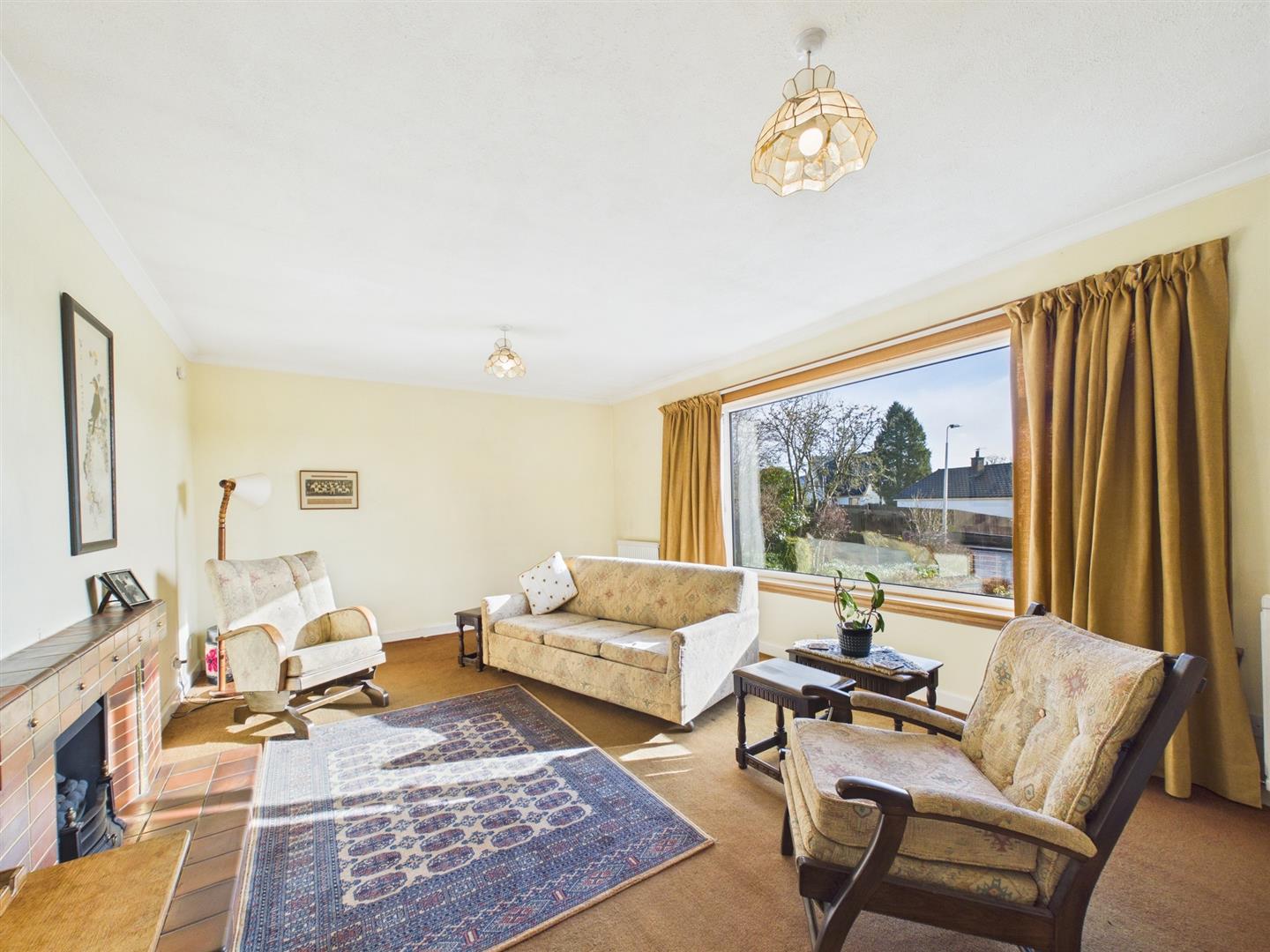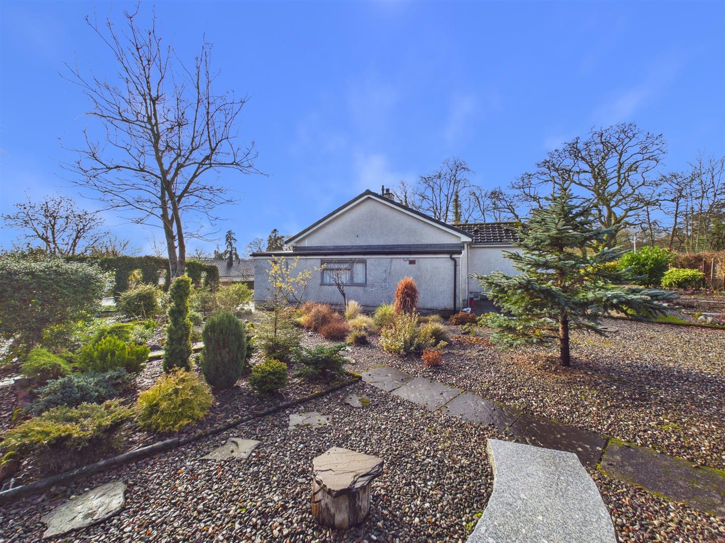 Situated within a peaceful residential setting in Almondbank, this spacious detached bungalow offers well-proportioned accommodation, generous gardens and excellent potential to modernise and personalise.The property opens into a welcoming entrance hallway providing access to all principal rooms. The bright and generously sized living room features a large picture window overlooking the front garden, allowing natural light to flood the space and creating a comfortable setting for everyday living. A separate dining room offers ample space for family meals and entertaining, while the fitted kitchen provides good storage and worktop space, with scope for upgrading to suit modern tastes. There are three well-proportioned bedrooms, each enjoying pleasant outlooks over the surrounding gardens. A family bathroom and separate WC add practicality and convenience. The layout offers flexibility and would suit a range of buyers, including families, downsizers or those seeking single-level living. Externally, the property enjoys mature, well-established front and rear gardens, mainly laid to gravel and planting for ease of maintenance. A driveway leads to a useful gargae, providing additional parking and storage. Offering spacious accommodation in a desirable village location, this property presents a fantastic opportunity to create a comfortable long-term home close to Perth and excellent transport links.
