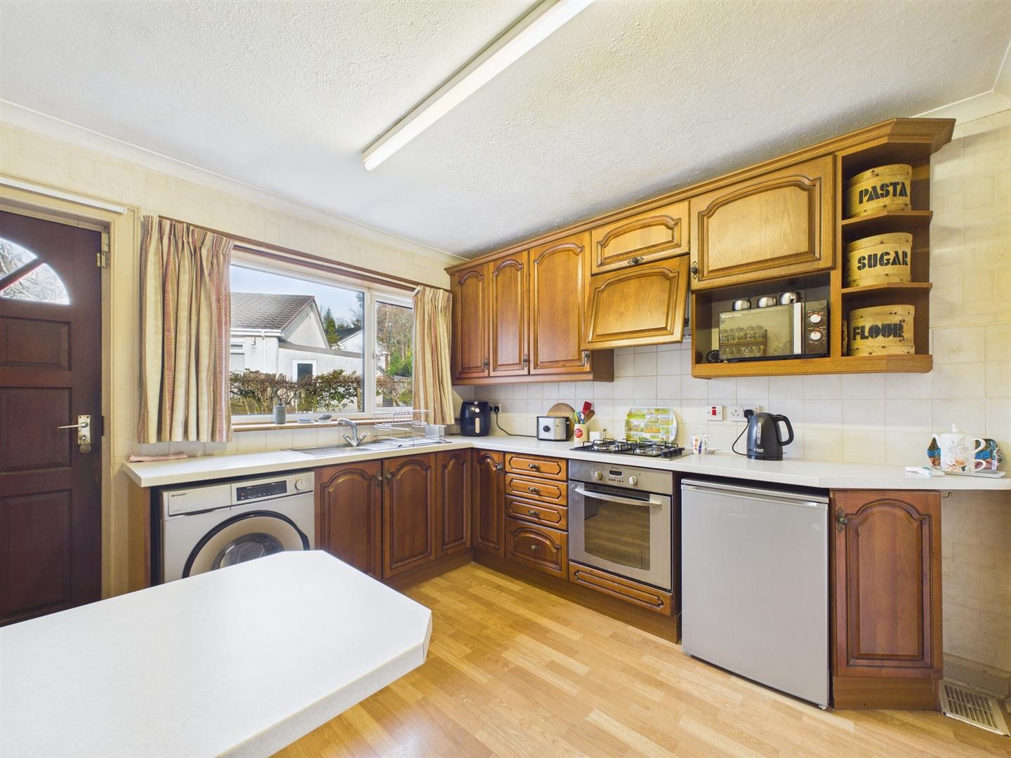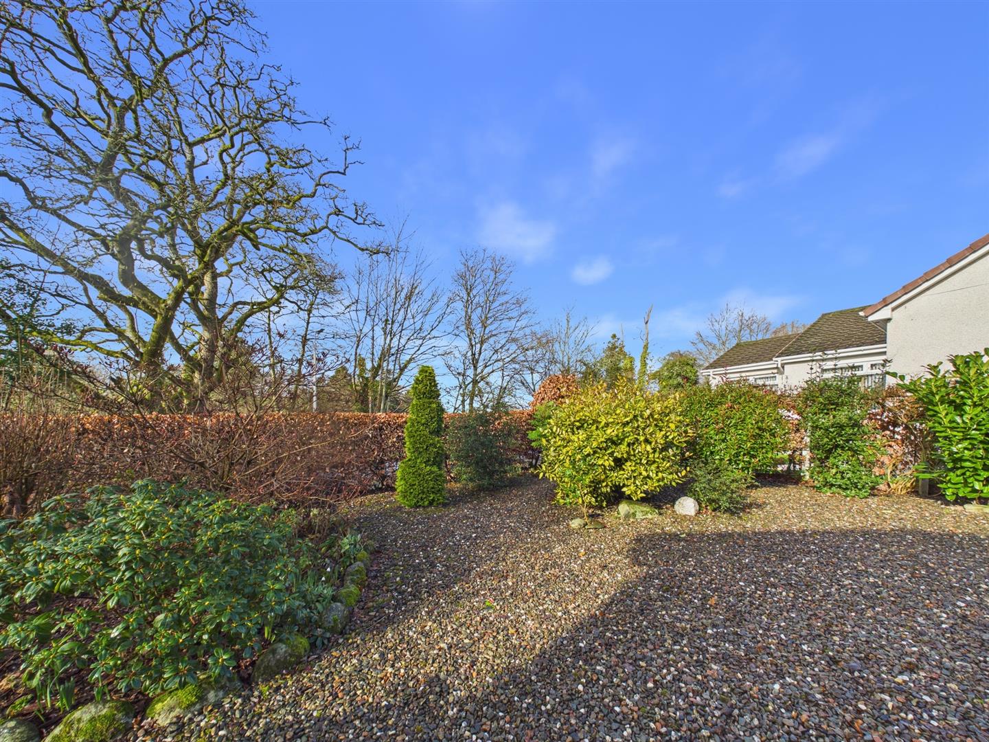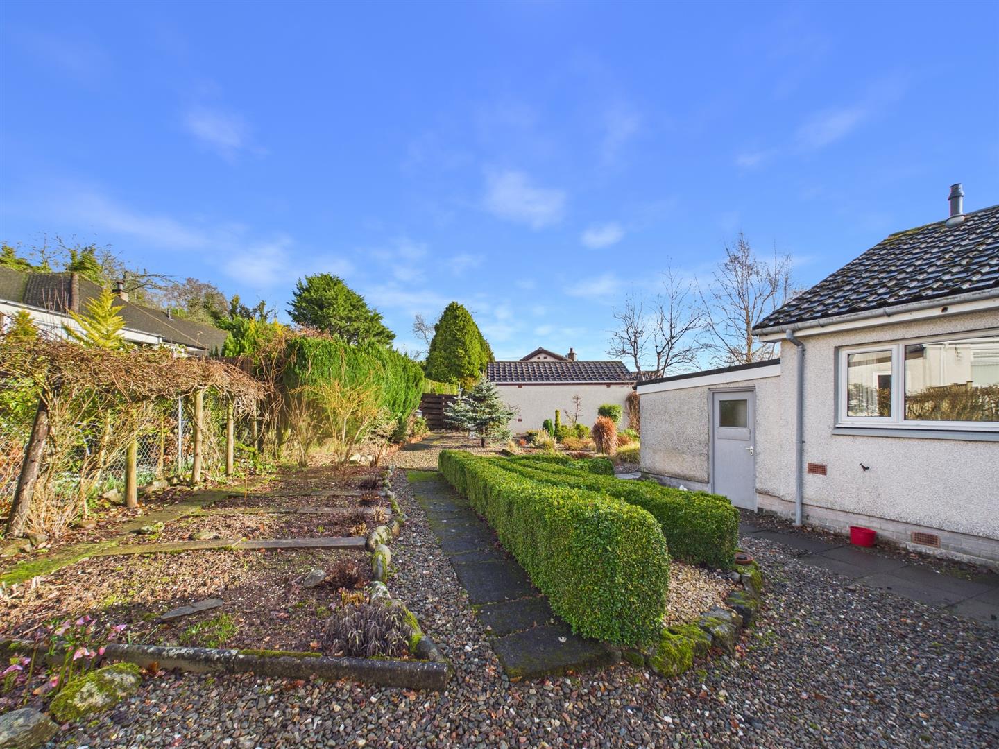 Situated within a peaceful residential setting in Almondbank, this spacious detached bungalow offers well-proportioned accommodation, generous gardens and excellent potential to modernise and personalise.The property opens into a welcoming entrance hallway providing access to all principal rooms. The bright and generously sized living room features a large picture window overlooking the front garden, allowing natural light to flood the space and creating a comfortable setting for everyday living. A separate dining room offers ample space for family meals and entertaining, while the fitted kitchen provides good storage and worktop space, with scope for upgrading to suit modern tastes. There are three well-proportioned bedrooms, each enjoying pleasant outlooks over the surrounding gardens. A family bathroom and separate WC add practicality and convenience. The layout offers flexibility and would suit a range of buyers, including families, downsizers or those seeking single-level living. Externally, the property enjoys mature, well-established front and rear gardens, mainly laid to gravel and planting for ease of maintenance. A driveway leads to a useful gargae, providing additional parking and storage. Offering spacious accommodation in a desirable village location, this property presents a fantastic opportunity to create a comfortable long-term home close to Perth and excellent transport links.