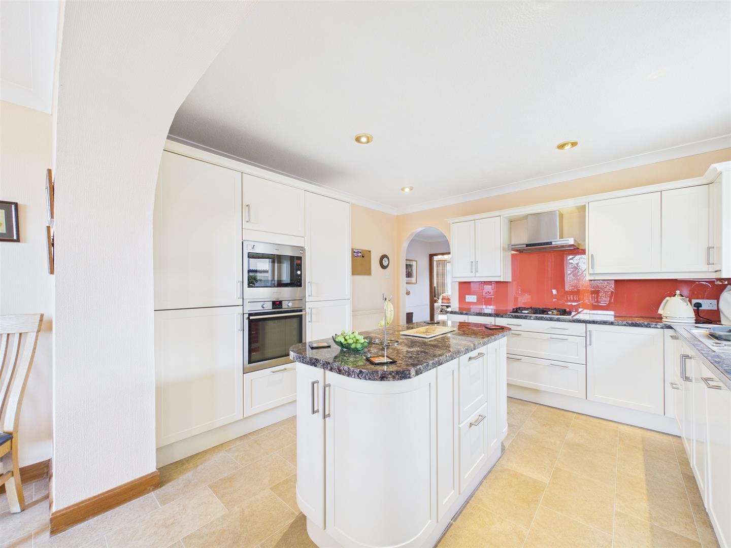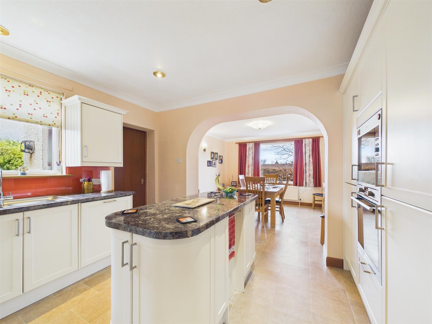 Located within a prime residential area of Perth, this spacious four-bedroom detached family home offers generous accommodation, attractive gardens and excellent versatility for modern living.The property opens into a welcoming entrance hallway which provides access to the main ground floor rooms. A bright and comfortable living room sits to the front of the property, featuring a large window and attractive fireplace, creating a warm and relaxing space. The heart of the home is the spacious kitchen, fitted with a range of modern units, integrated appliances and a central island. The kitchen flows through to a dining room which overlooks the garden, providing an ideal setting for family meals and entertaining. A charming sunroom offers a peaceful place to relax while enjoying views across the front garden. The ground floor also benefits from a double bedroom/sitting room, useful utility room, a WC and a bathroom. Upstairs, the property offers three well-proportioned double bedrooms including one with its own en-suite bathroom. A further family bathroom completes the upper level. Externally, the home enjoys well-maintained gardens to the front and rear, along with a driveway and garage providing excellent parking and storage.