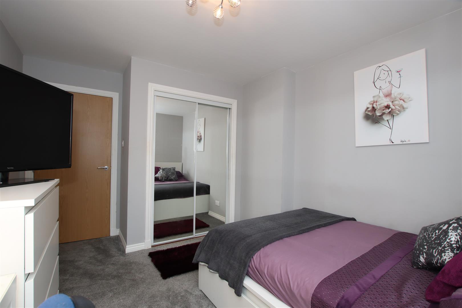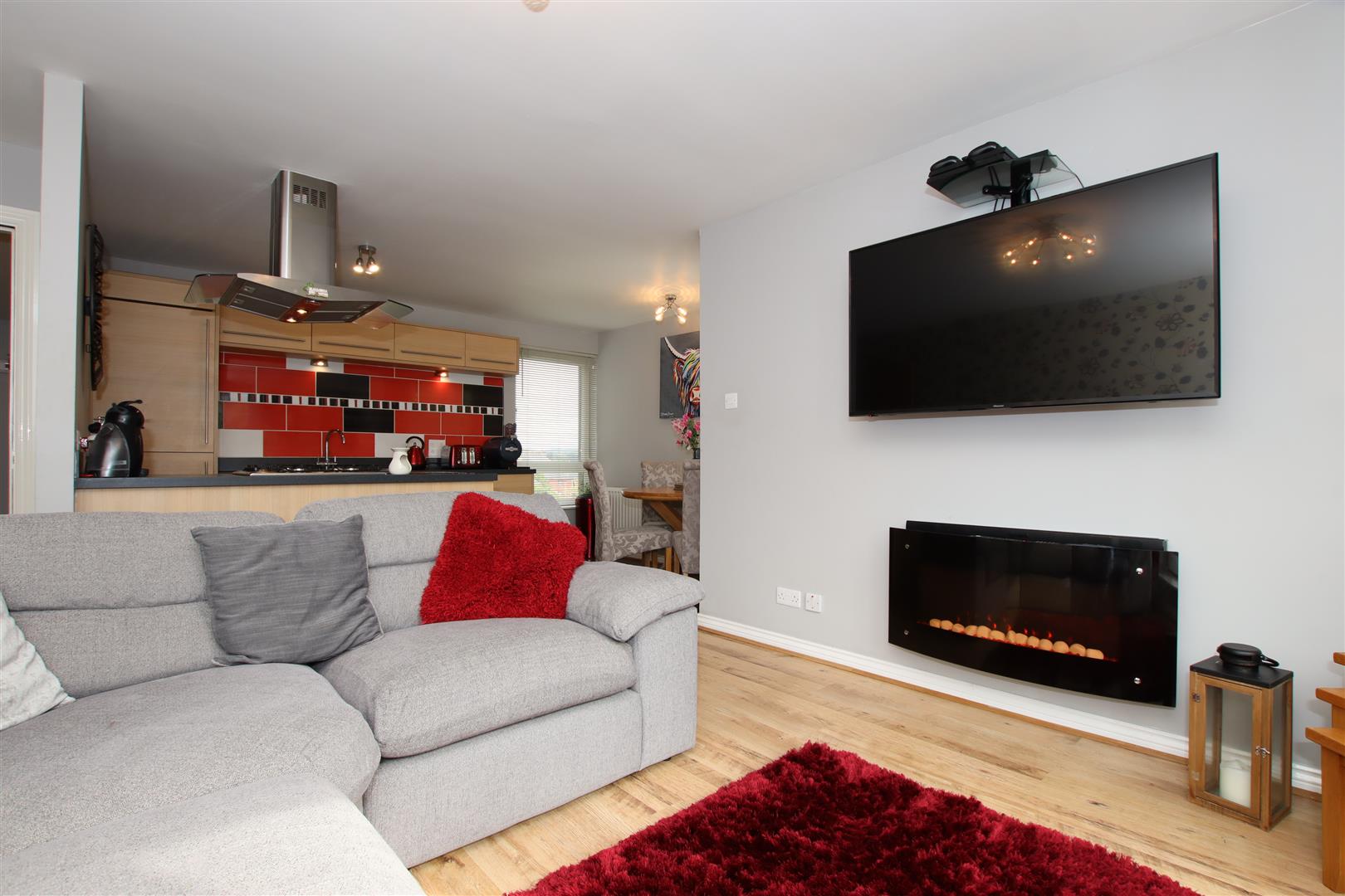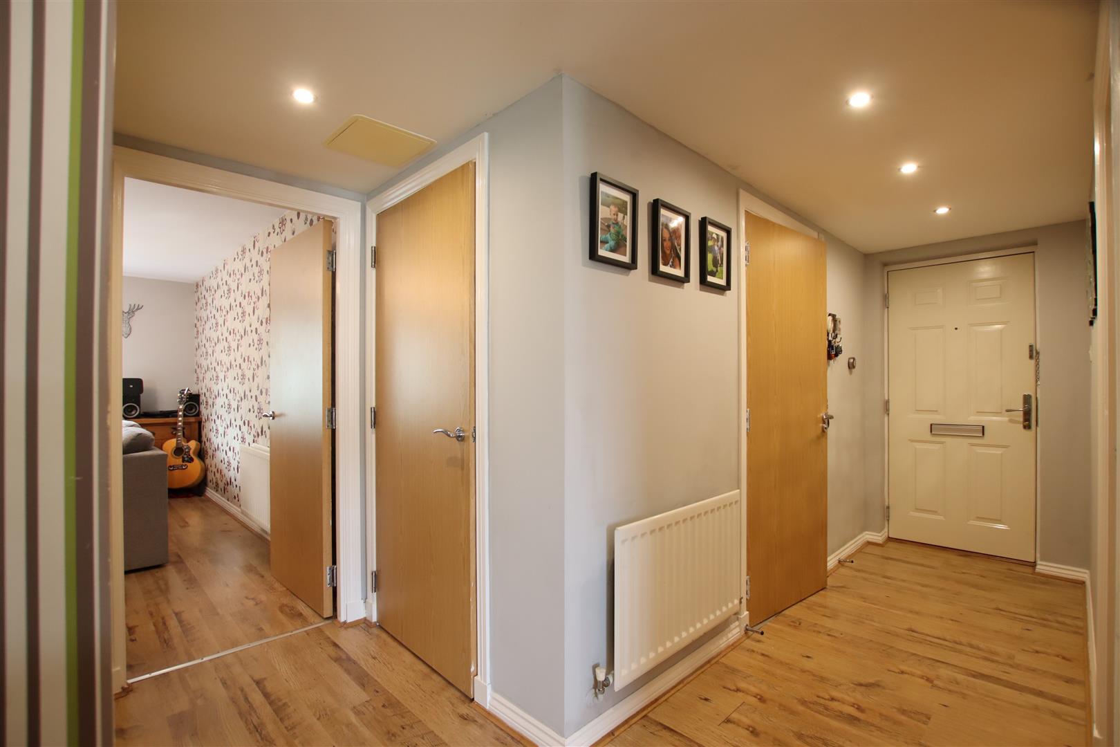 A simply immaculate first floor apartment, ready to move into and suitable for a range of buyers. A secure entry system gives access into the communal hallway and to the entrance for the property. A central hallway boasts a large walk-in cupboard and doors to the majority of the rooms. Possibly the most eye-catching feature is the notably large and bright open-plan lounge/kitchen/dining room. It provides floorspace for various items of furniture and the kitchen area offers plenty of storage and workspace. There is also a stylish bathroom and two double bedrooms, both with built-in wardrobes and with the master bedroom also featuring its own modern en-suite shower room. Allocated parking and visitor parking is available to the front of the block. Not only is this one of the largest sized apartments within the development, it also sits at the end of the block resulting in a higher degree of privacy.