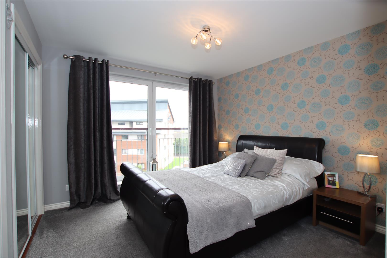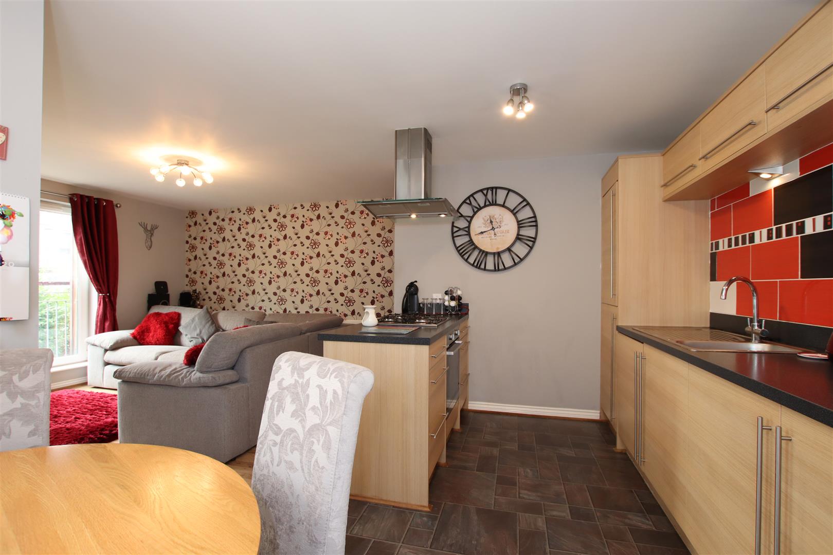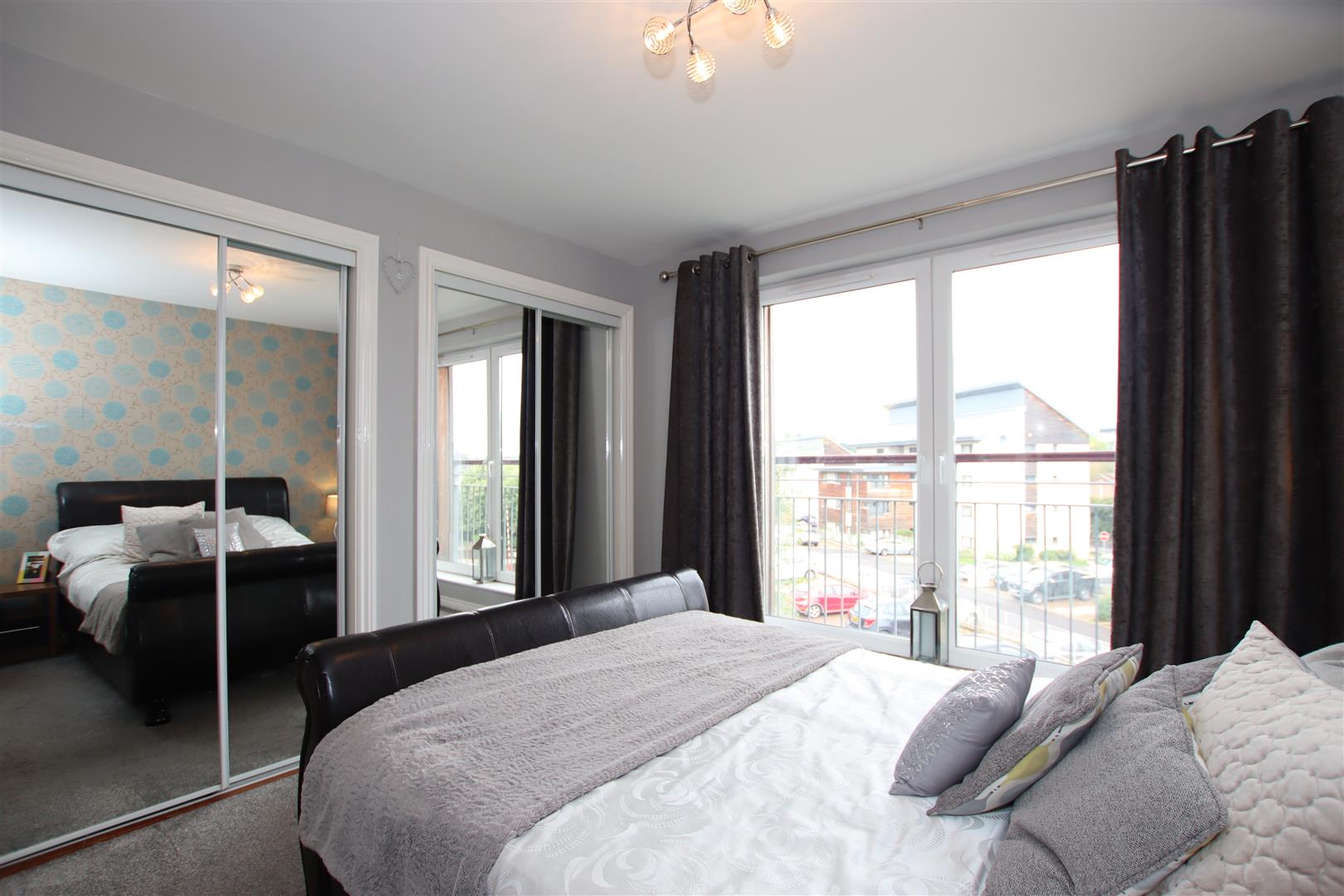 A simply immaculate first floor apartment, ready to move into and suitable for a range of buyers. A secure entry system gives access into the communal hallway and to the entrance for the property. A central hallway boasts a large walk-in cupboard and doors to the majority of the rooms. Possibly the most eye-catching feature is the notably large and bright open-plan lounge/kitchen/dining room. It provides floorspace for various items of furniture and the kitchen area offers plenty of storage and workspace. There is also a stylish bathroom and two double bedrooms, both with built-in wardrobes and with the master bedroom also featuring its own modern en-suite shower room. Allocated parking and visitor parking is available to the front of the block. Not only is this one of the largest sized apartments within the development, it also sits at the end of the block resulting in a higher degree of privacy.