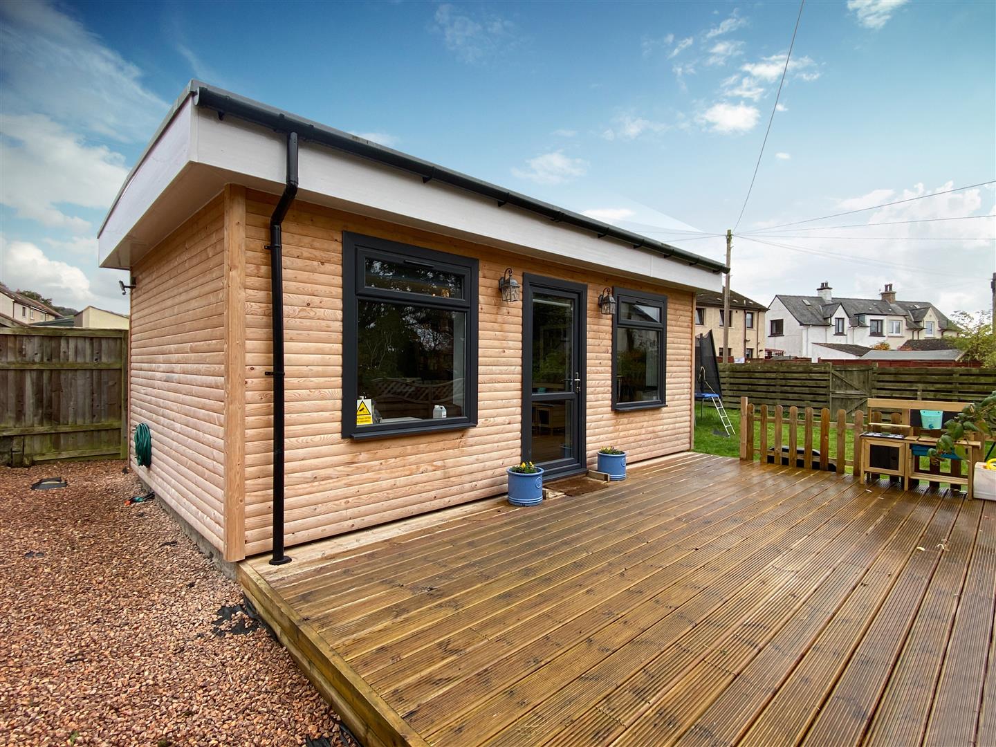 38 Goshen Road benefits from a number of features that will appeal to potential buyers; spacious accommodation, good storage space, gas central heating, double glazing, off-street parking, a generous rear garden and, perhaps the real hidden gem, a fully-equipped and purpose-built cabin to the rear which offers a multitude of uses. All of this, in one of the most desirable villages in the Perth area. The property also has planning permission for a two-storey extension to the side and rear which would add a larger bathroom, second lounge and large dining kitchen on the ground floor plus a 4th bedroom and shower room upstairs.The property is entered into a bright vestibule which leads into the hallway and bathroom. The large lounge offers space for a range of furniture and has double doors leading into a sun room which can also be accessed from the kitchen. On the first floor, all three bedrooms and good size double rooms with the largest being notably spacious. There’s also a loft access hatch to additional storage space.The cabin almost justifies a full set of particulars itself. It is currently used as a fully functioning hair and beauty salon with lighting, power and water supplies. The modern standard of insulation and double glazing means it is also kept warm and protected from the elements. It even has its own separate WC. It could of course suit a range of different uses such as a home gym or yoga studio, office, an artists studio, games rooms, cinema or simply a great place to relax and unwind. Whatever the use may be, the simple fact it is; the cabin is undeniably brilliant. The large proportions of the garden to the rear mean that the addition of the cabin has in no way compromised the garden space. There is a pleasant decking area with plenty of space for seating and an area of lawn to the back which enjoys a sunny south-facing aspect.