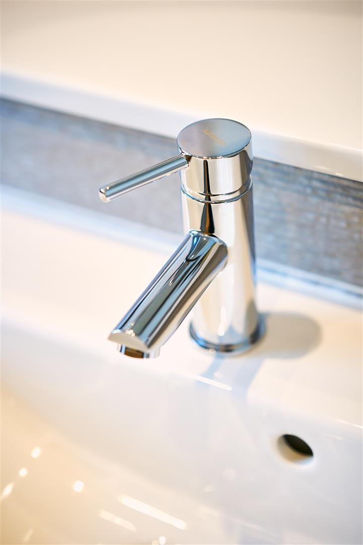 •Tiled splashback above wash hand basin and/or tiled bulkhead wall with gloss white top (dependant on house type)