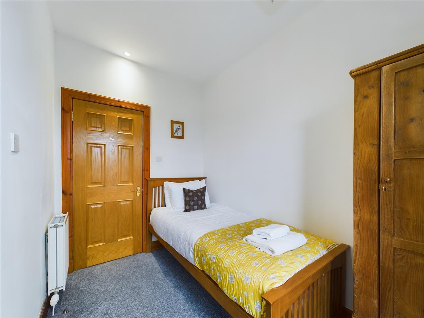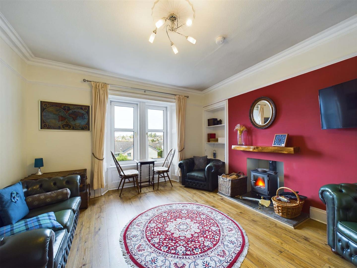 This attractive 2 bedroom upper villa conversion is full of character and is presented in excellent condition throughout. Boasting very generous accommodation accentuated by lovely high ceilings, the property enjoys a very quiet position within the sought-after village of Scone. It also features its own driveway, private entrance to the rear, a large garden, external storage space, double glazing, gas central heating and even a charming wood-burning stove. The private entrance for the property is located to the rear. A set of internal stairs leads up a central hallway with there is a very useful private store. The accommodation consists of a generous living room with wood-burning stove, a large dining kitchen, a notably spacious bathroom with separate shower enclosure, a double bedroom and a single bedroom. To the front of the property there is a long private driveway providing parking for upto 3 cars. The generous, fence-enclosed garden to the rear features a large patio, an area of lawn with planted borders, two external stores plus a further understair shed/store.
